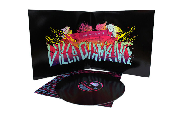 Edición del disco de Villa Diamante, en formato 12" gatefold + vinilo de cartón con surcos de laca sectorizada.
